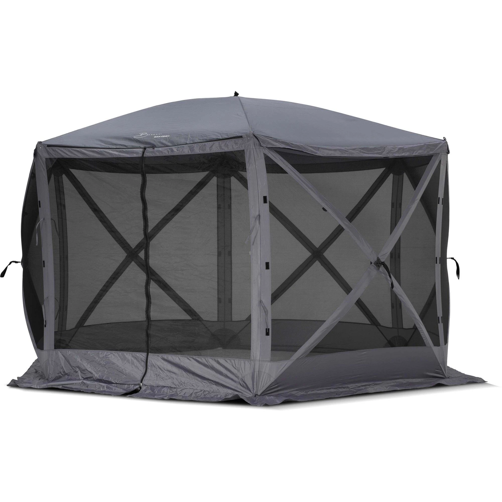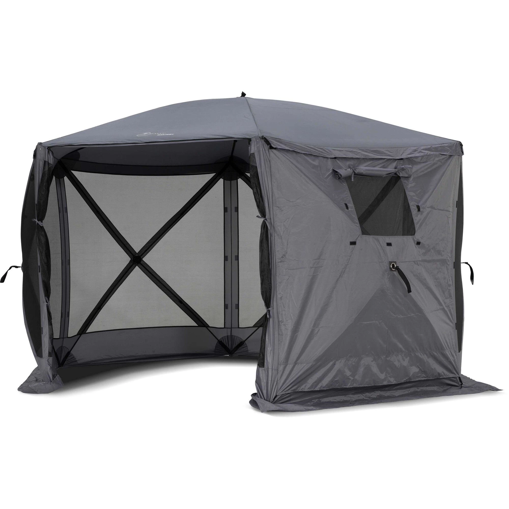 De tent heeft een doek van polyester en zijwanden van horrengaas. Op deze manier heeft u in de tent geen last van insecten. Een van de horrengaas wanden is voorzien van een deur met rits. De tent is zeer stabiel en biedt schaduw op zonnige dagen en bescherming tegen regen en wind bij slecht weer.