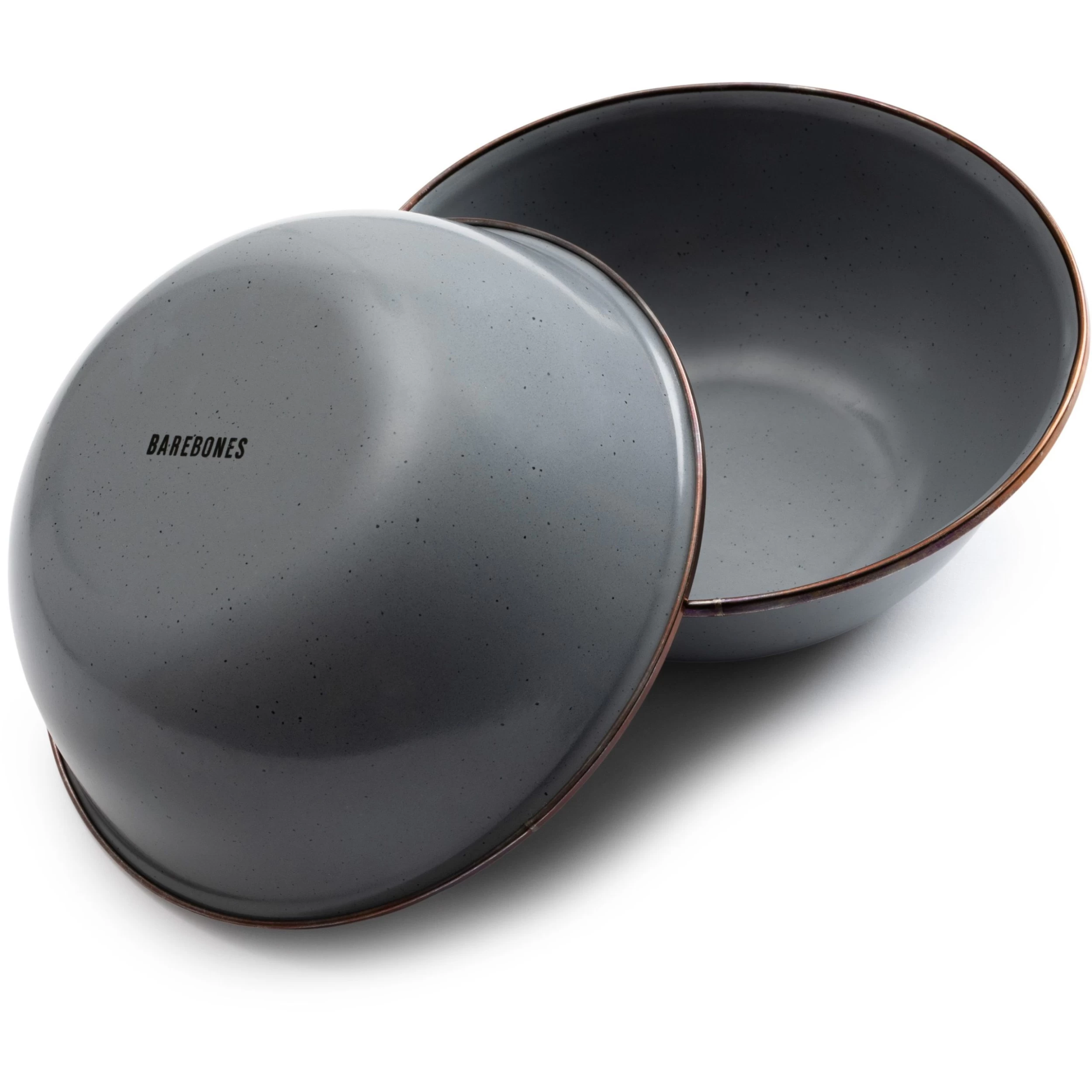 De Barebones Emaillen schalen zijn vaatwasser bestendig. De koperen details geven de schalen een vintage look en doordat de schalen geëmailleerd zijn, zijn de schalen bijna onbreekbaar. De emaillen schalen hebben een afmeting van 160 x 55 millimeter en een gewicht van ongeveer 204 gram. Vermijd bij het schoonmaken van de schalen schurende sponzen of borstels. Deze kunnen krassen op het materiaal veroorzaken. De schalen worden geleverd per 2 stuks.