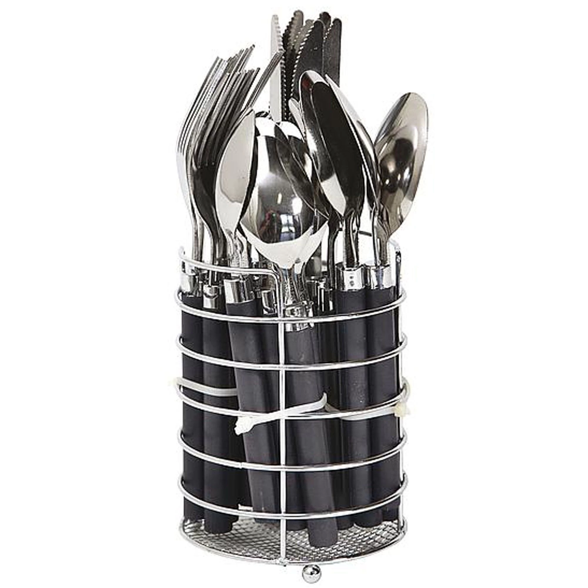 Deze 24-delige 6-persoons bestekset van Bo-Camp die wordt geleverd inclusief mandje is geschikt voor 6 personen. De bestekset bevat 6 vorken, 6 lepels, 6 messen en 6 theelepels. Het bestek is gemaakt van roestvast staal met een kunststof handgreep.