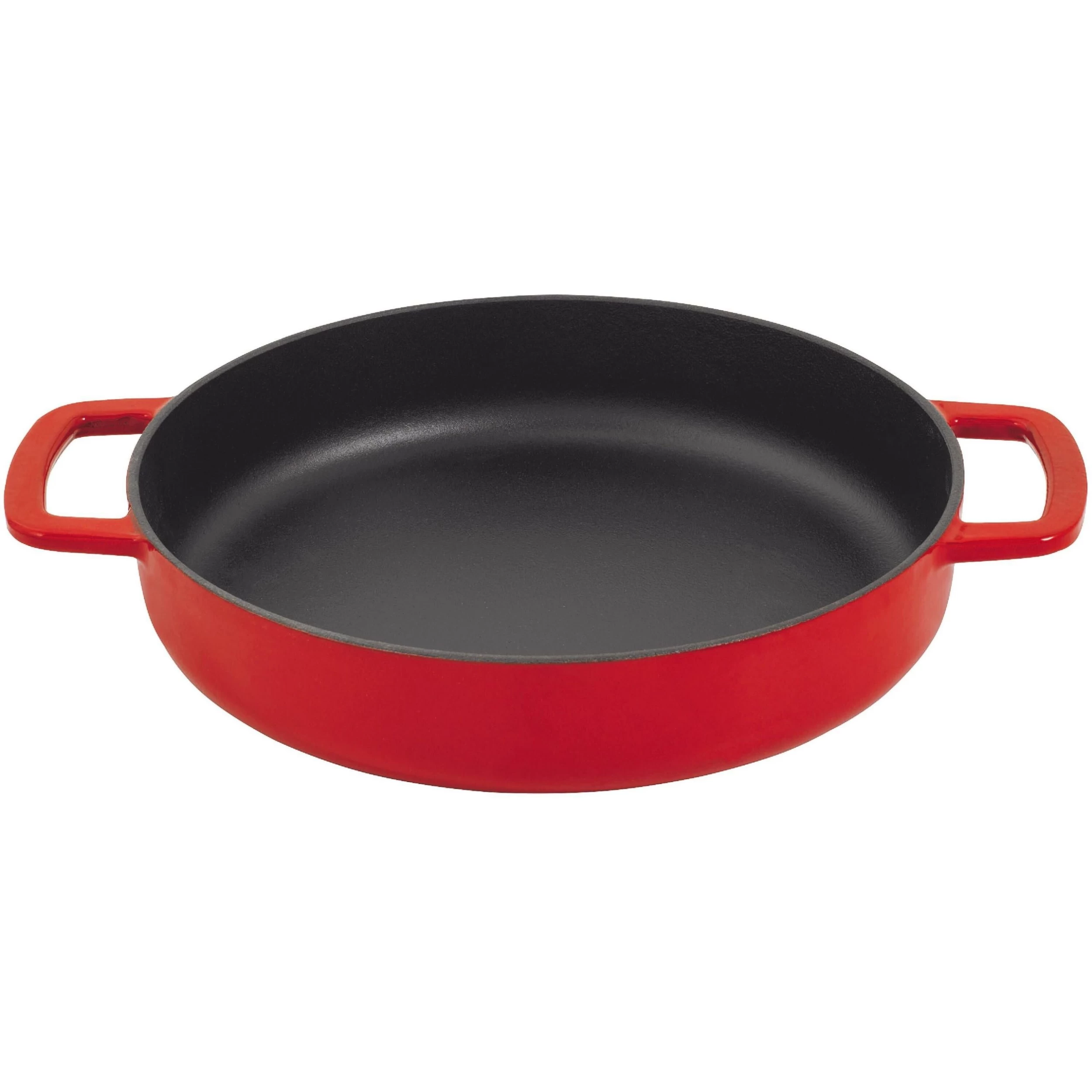 De COMBEKK Sous-Chef Double Handle skillet in rode kleur is een echte eyecatcher in de keuken of op de barbecue. Deze COMBEKK skillet is gemaakt van 100% gerecycled gietijzer met geëmailleerde coating. De koekenpan is geschikt voor gebruik op diverse warmtebronnen.