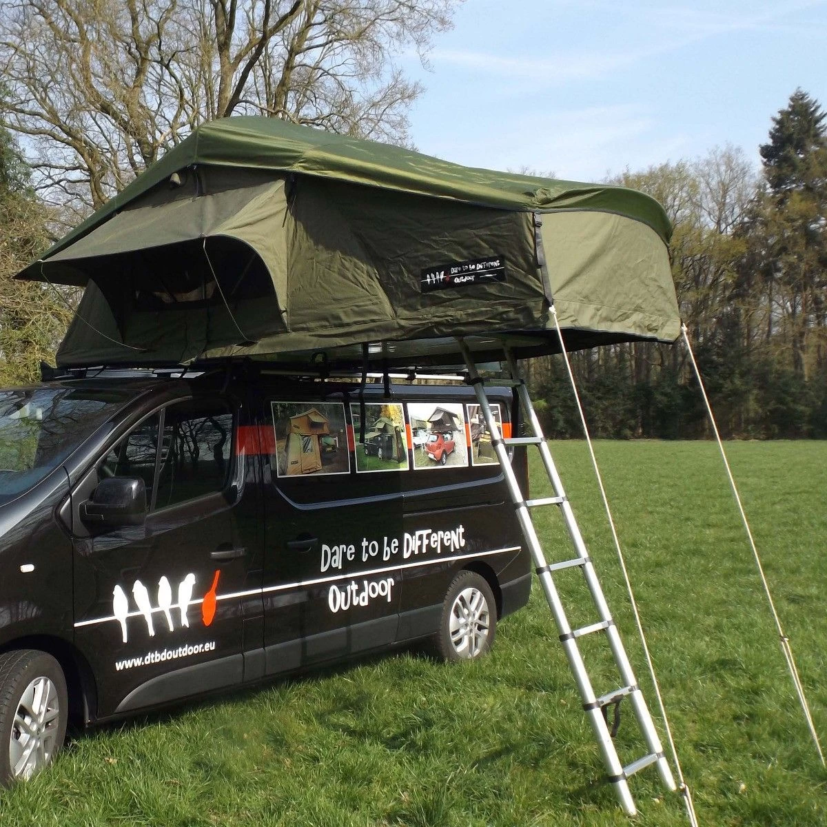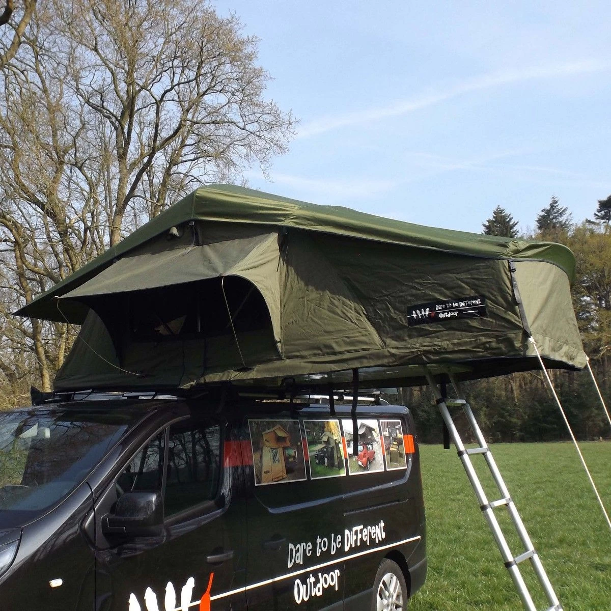 De 140L daktent van Dare to be Different outdoor is een bijzonder onderkomen voor de avontuurlijke kampeerder. Door de daktent op de dakdragers van de auto te bevestigen neemt u de daktent eenvoudig mee, waar u ook naartoe gaat.