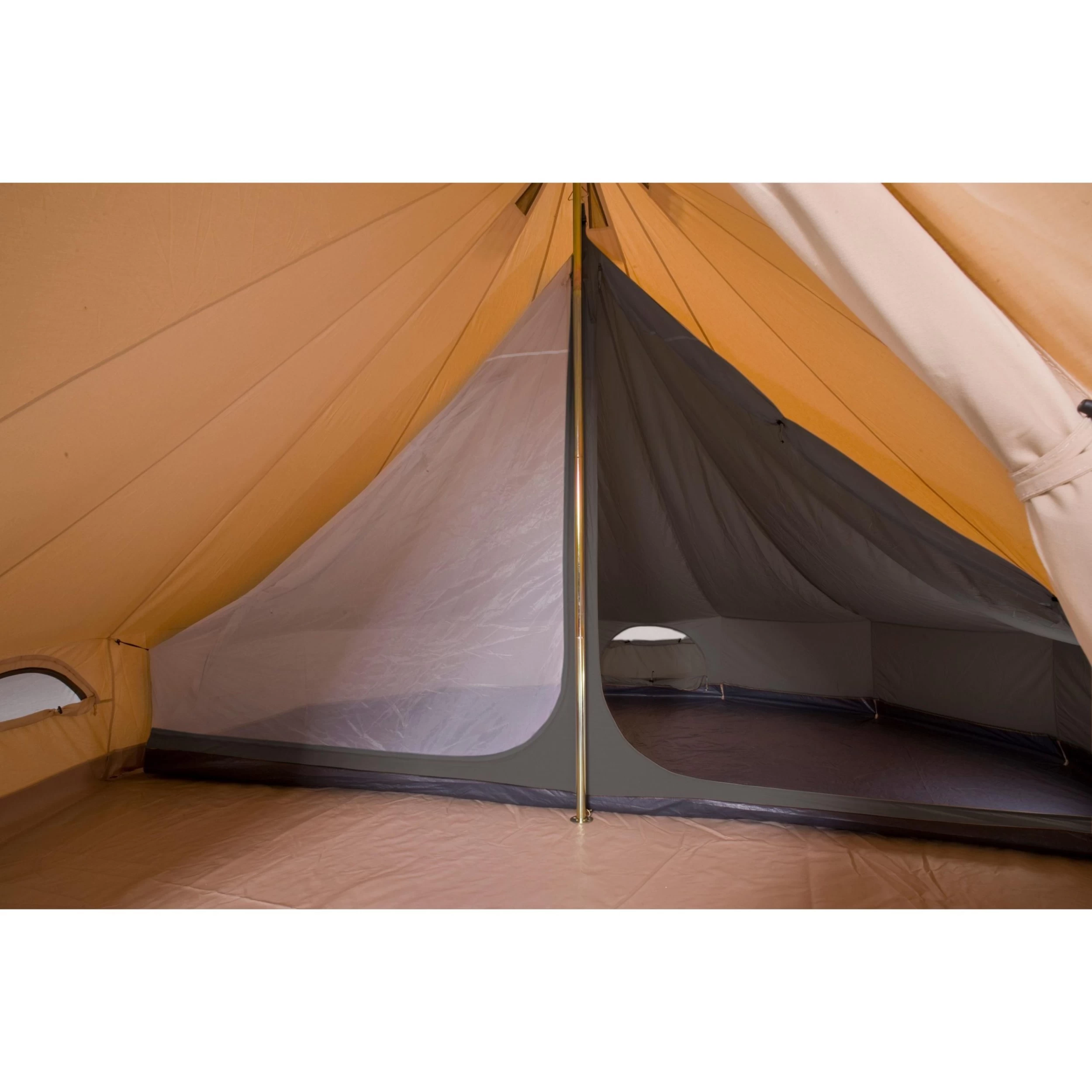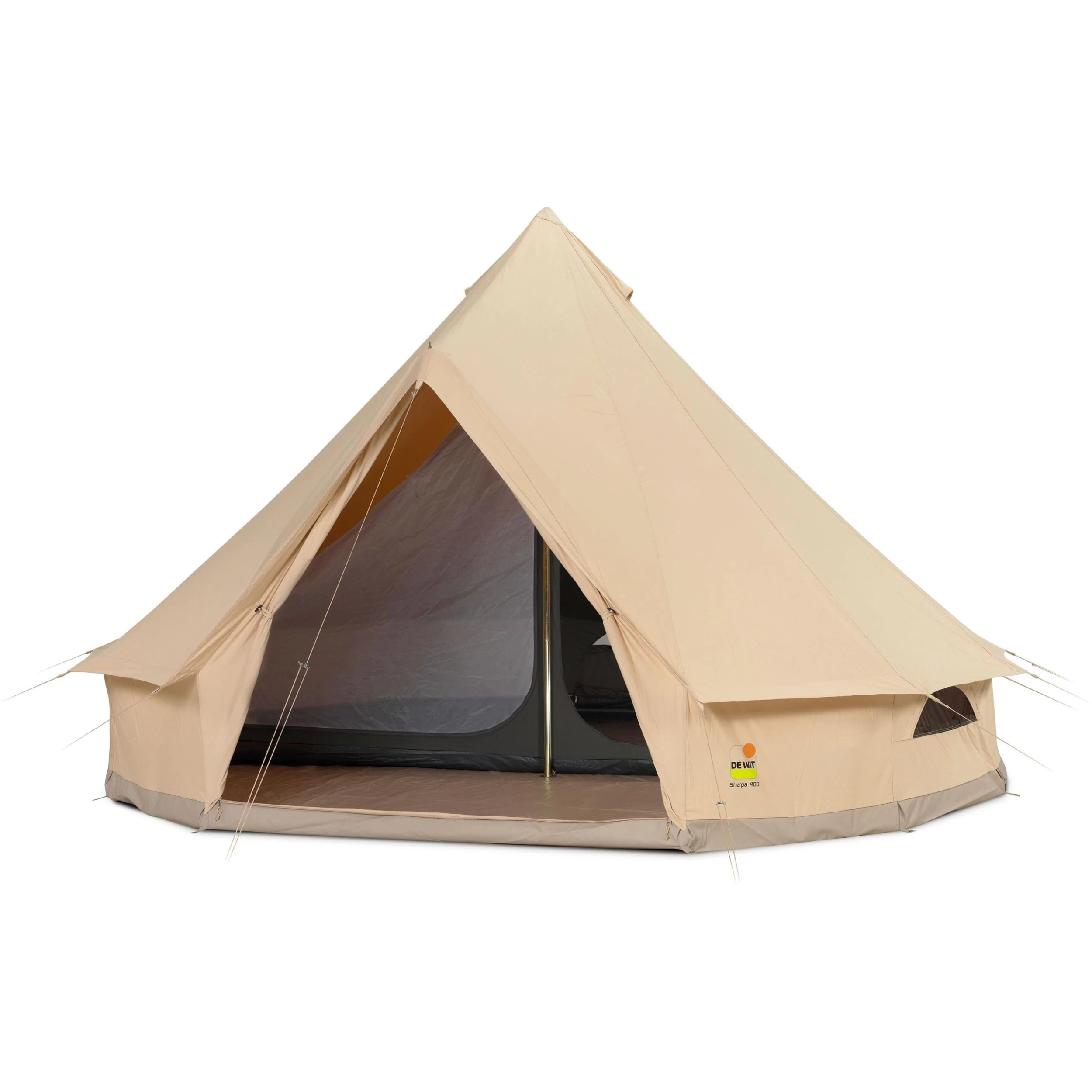 De Sherpa 400 is een grote groepstent in de vorm van een circustent, met een binnentent die geschikt is voor maximaal 6 personen.