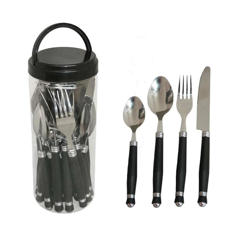 De Haba bestekset bestaat uit 24 stuks bestek. De set bevat vorken, messen, lepels en kleine lepels. Van elke soort zijn er 6 stuks. Het bestek komt in een kunststof koker met een handvat.