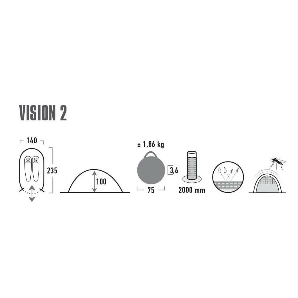 De High Peak Vision 2 pop up is een enkeldaks tent. De tent is heel eenvoudig op te zetten en daardoor ideaal voor festivals en korte kampeertrips.