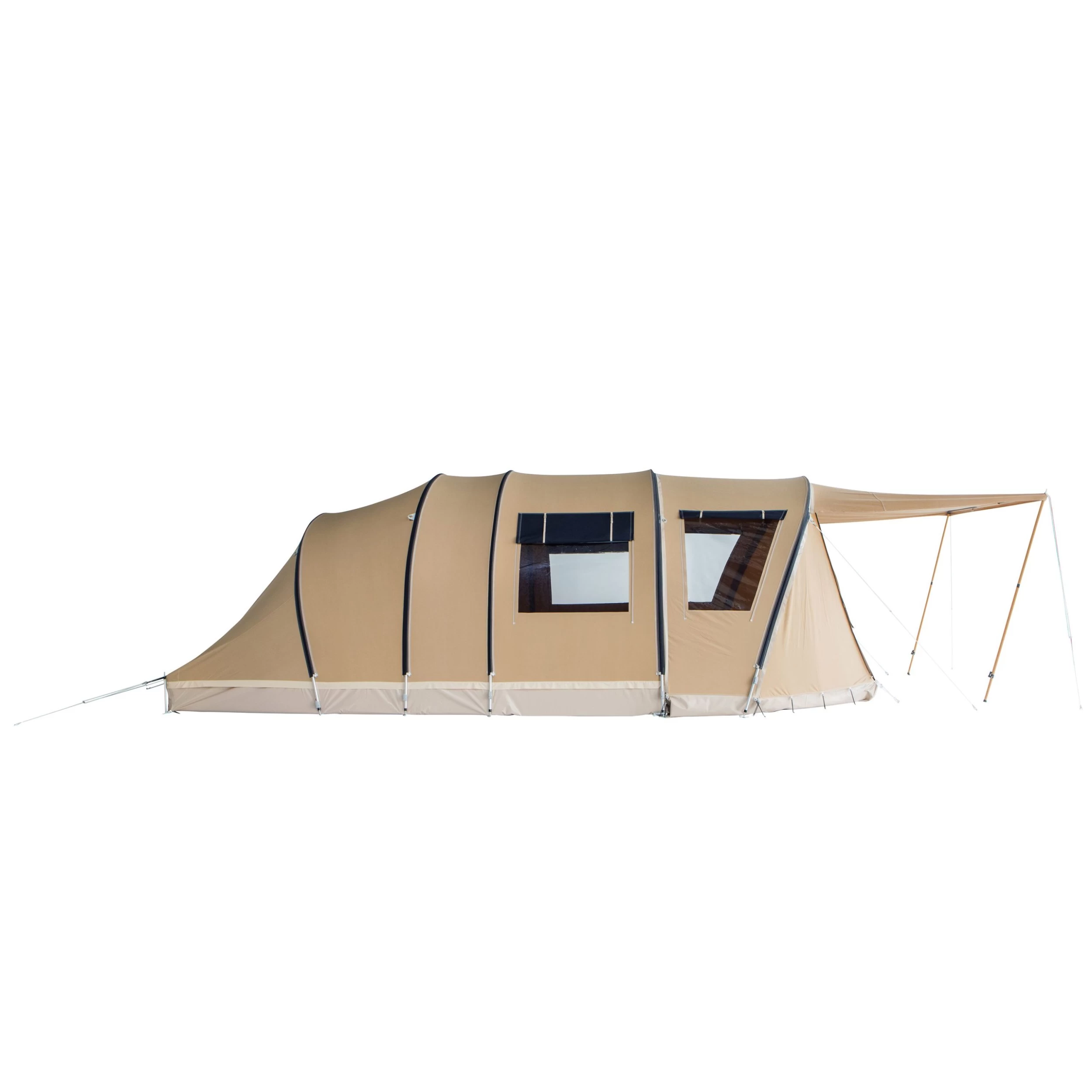 De Karsten Lacerta uitbreidingsset bestaat uit een voorwand voor de luifel en een inritsbaar kuipgrondzeil. Op deze manier kunt u de leefruimte van uw Karsten Lacerta tunneltent uitbreiden met 24 m². De voorwand is voorzien van twee ramen met flappen om deze af te sluiten.