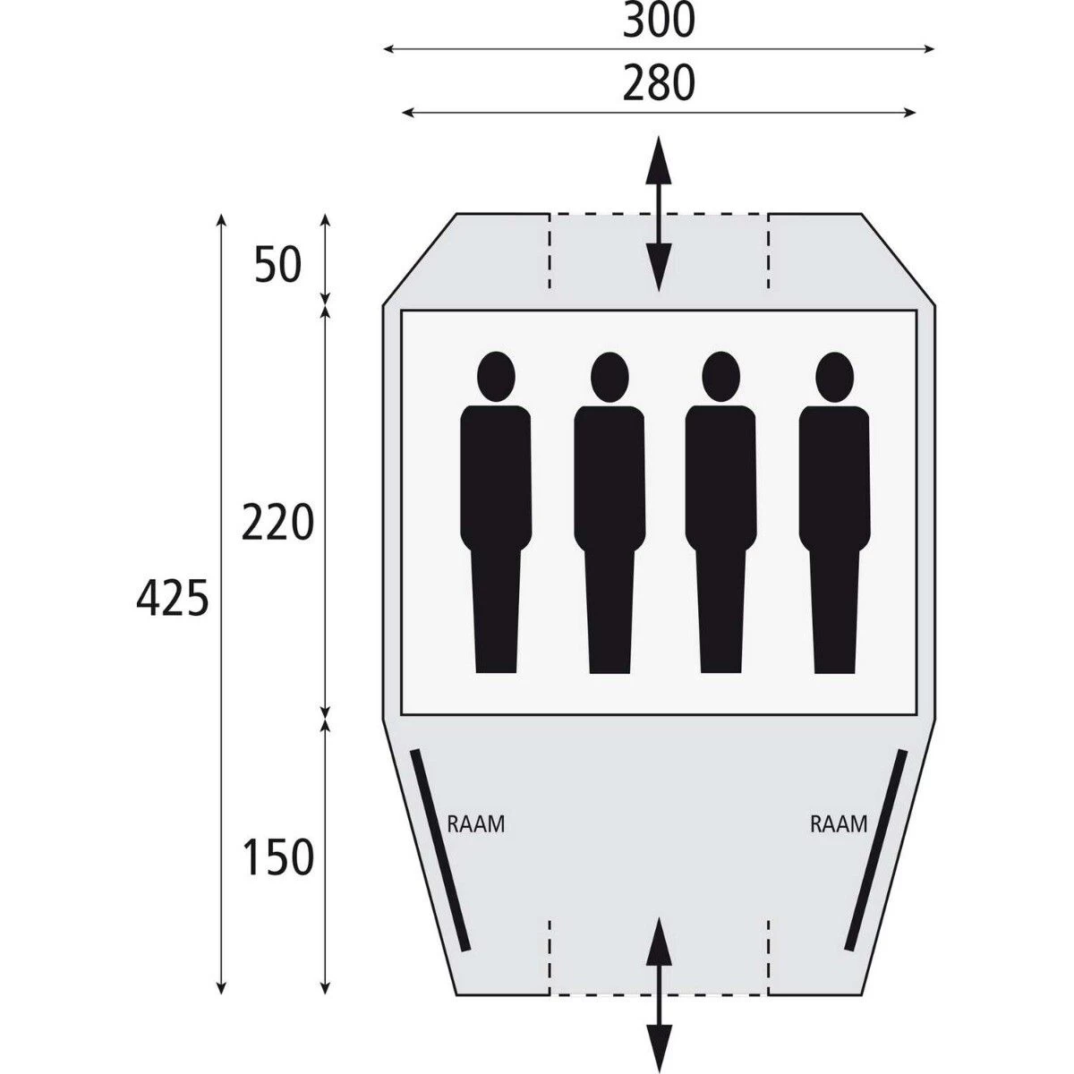 De Kenia 300 koepeltent is een ruime 4-persoons tent voorzien van twee ingangen. De buitentent is gemaakt van honeycomb polyester en de binnentent bestaat uit ventilerend polyamide en een PE-grondzeil. Daarnaast heeft de tent een voorbouw met afsluitbare ramen en een PE-kuipgrondzeil. Aan de achterzijde heeft de tent een extra bagagepunt. De tent is makkelijk op te zetten met de stevige fiberglas boogstokken.