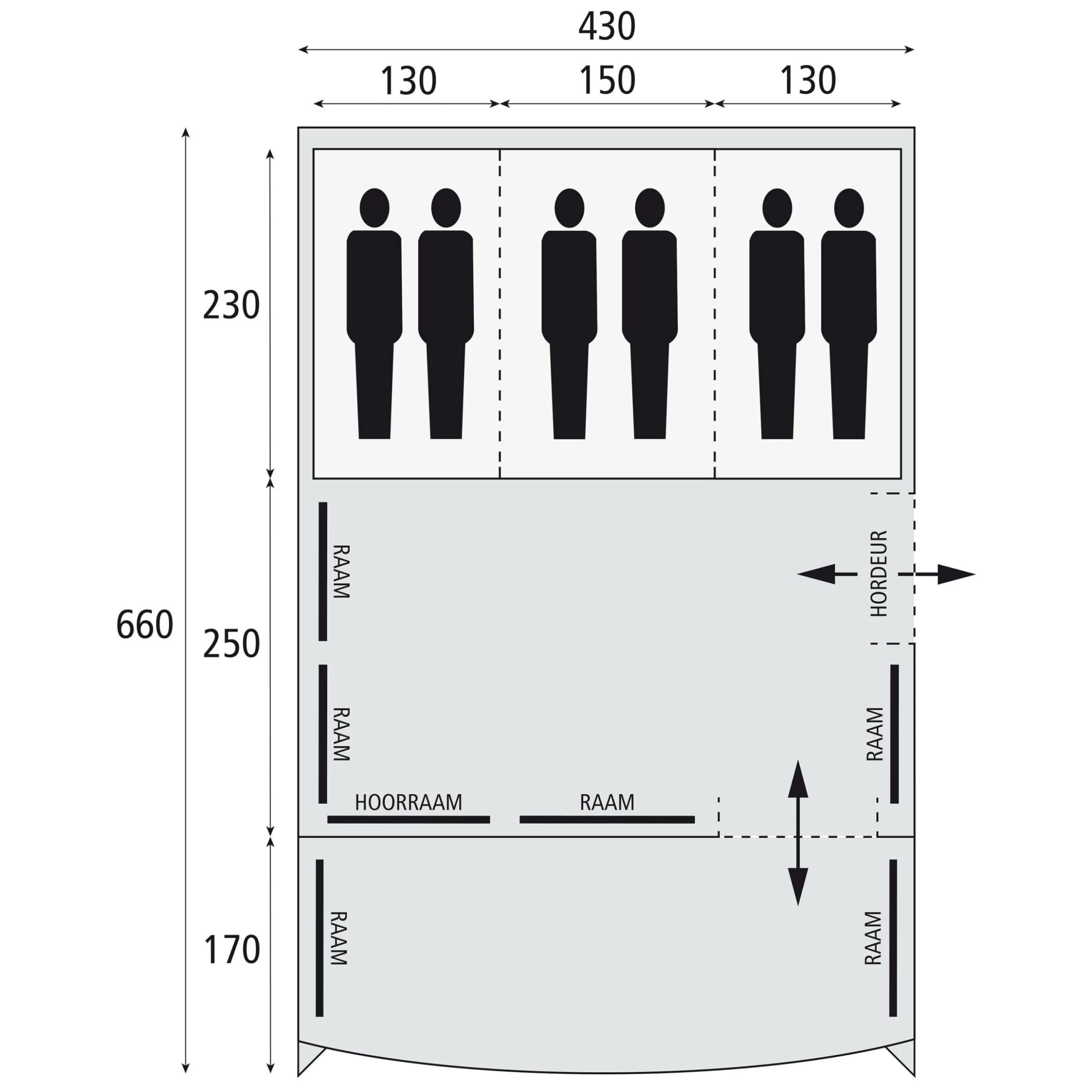 De binnentent is flexibel in te delen door het gebruik van de wegritsbare scheidingswanden. De slaapvertrekken hebben een lengte van 230 cm en hebben extra donkere binnententen voor optimaal slaapcomfort. Verder heeft de tent opbergzakken in de slaapcabine en een zij-ingang. De leefruimte is groter te maken door de wegrolbare voorwand.